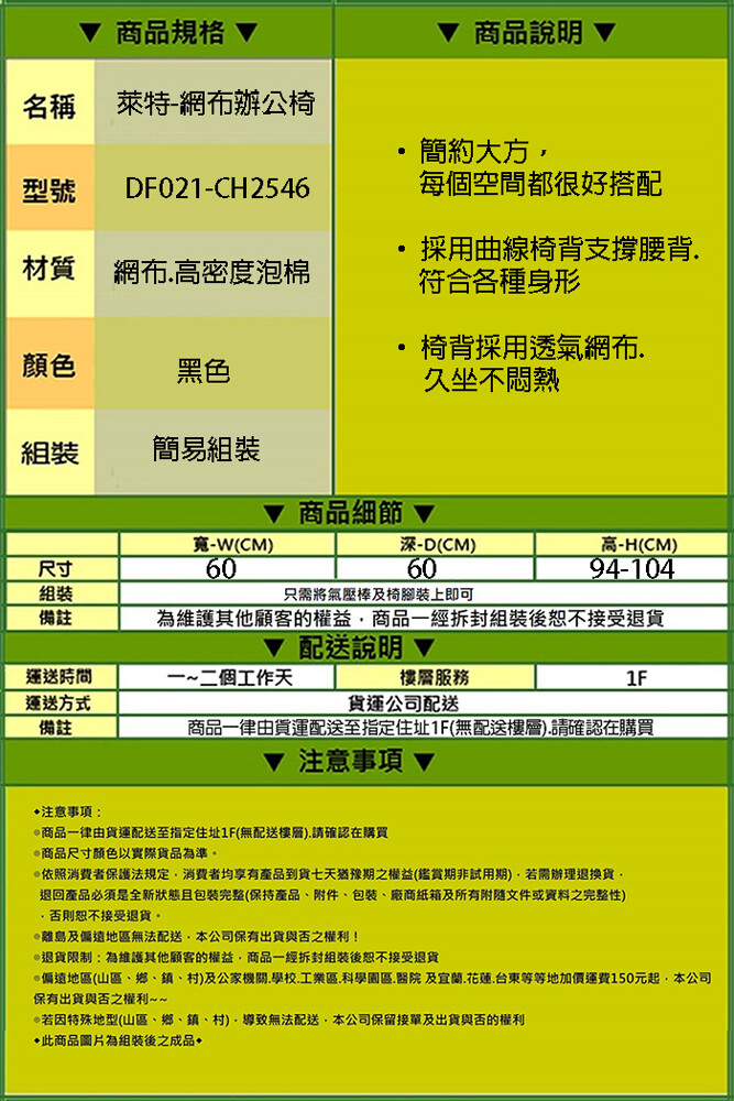 ‧商品名稱:《DFhouse》萊特-網布辦公椅