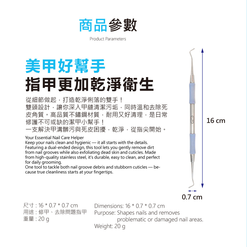#ME5 #甲溝棒 #潔淨甲緣 #雙頭雙向設計 #甲面清潔 #指甲護理 #凍甲修護 #甲肉撥開 #甲溝清潔 #人體工學設計 #高品質材料 #耐用工具 #指甲修整 #護甲工具 #護甲輔助 #精確修整 #細緻清潔 #指甲護理工具 #清理指甲刺 #多功能設計 #taiwandesign