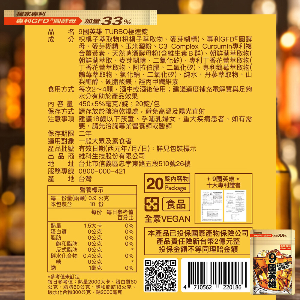 1.商品組合/規格:9國英雄TURBO極速錠X4包