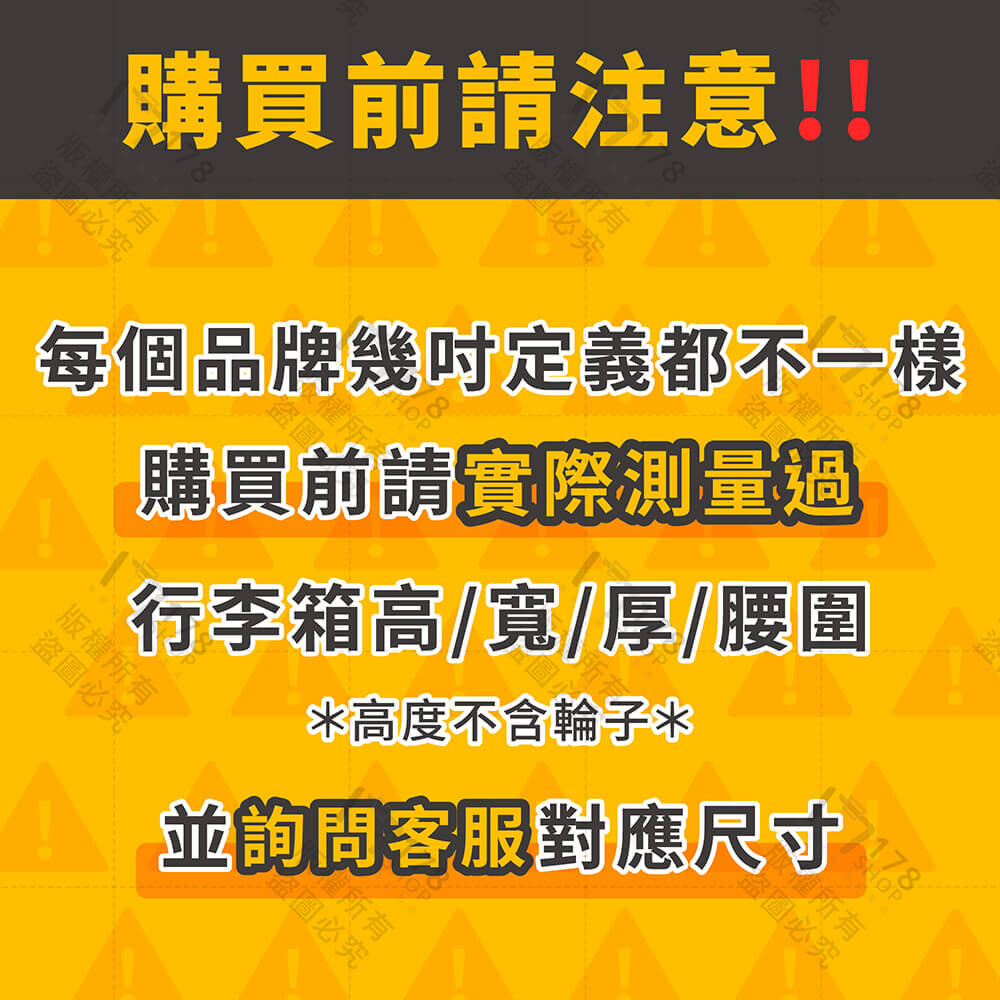 🔺請務必手工測量自家行李箱的腰圍、長度、寬度、厚度(不含輪子/提把)