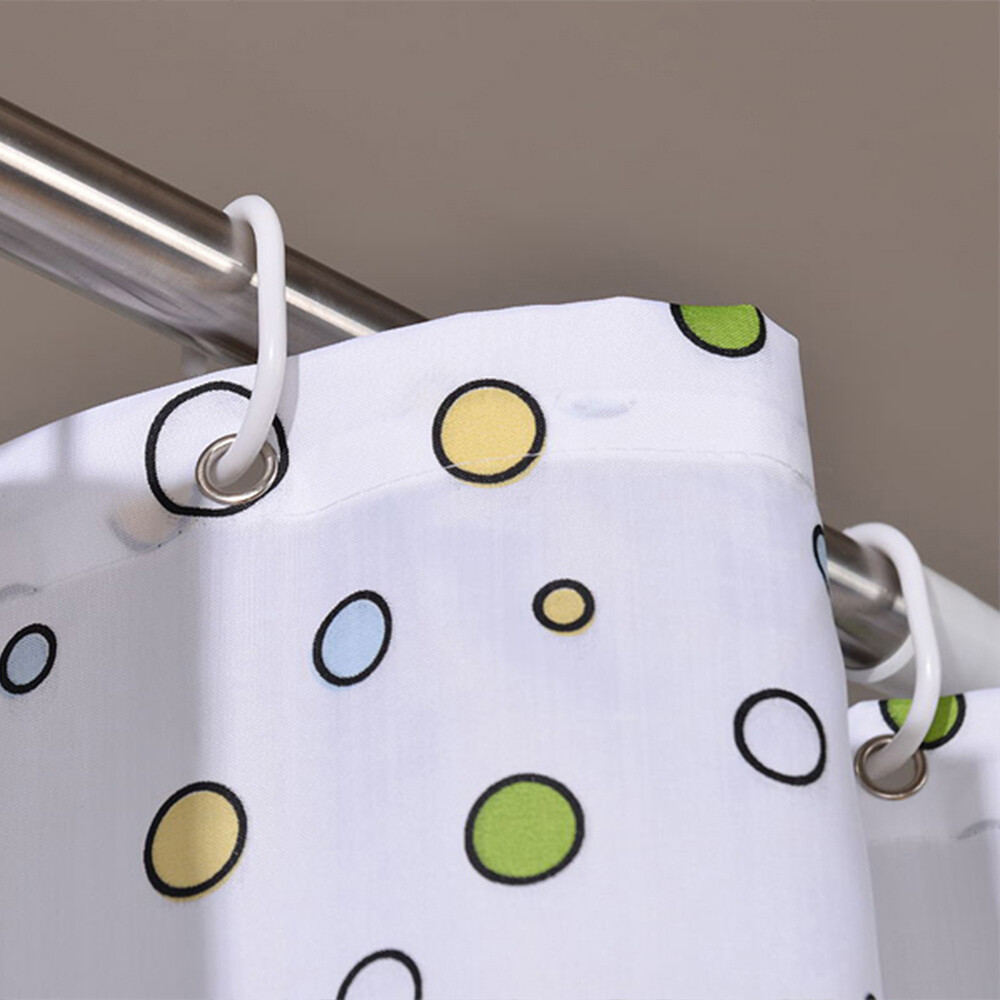 選購浴簾時,寬度建議大於實際寬度的20-30公分,高度建議離天花板20公分左右,底部離地不拖地即可。