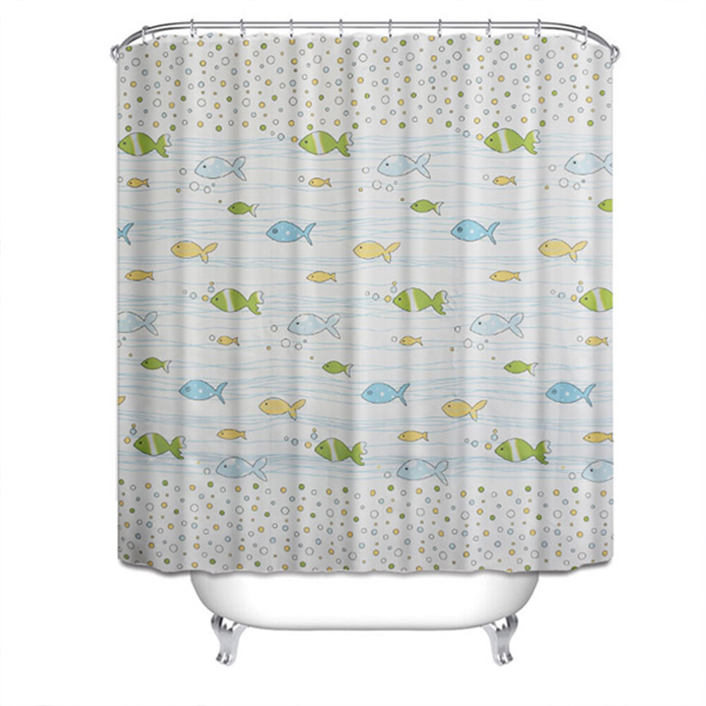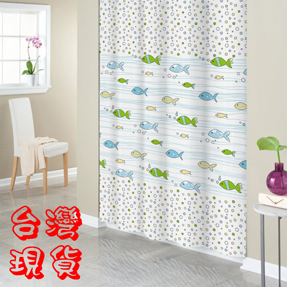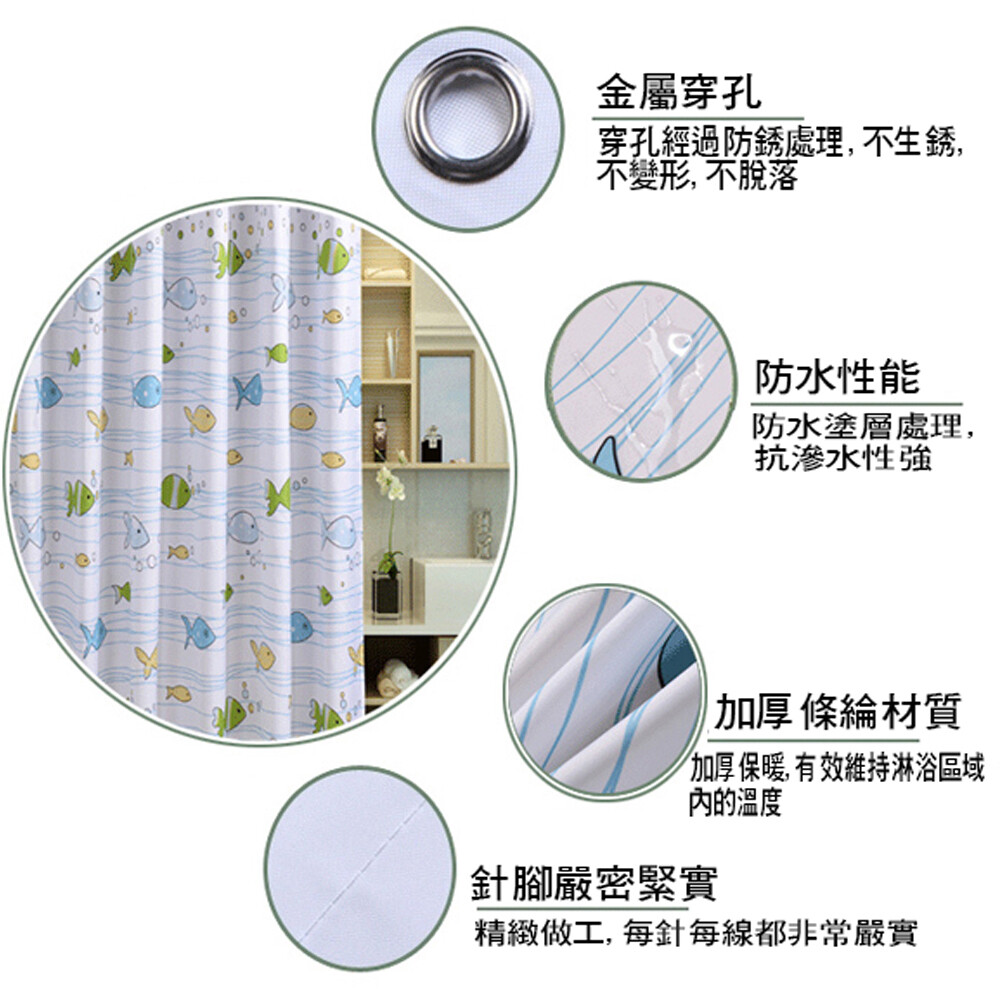防水浴簾 可愛卡通小魚浴室簾PEVA 浴簾 寬120×180