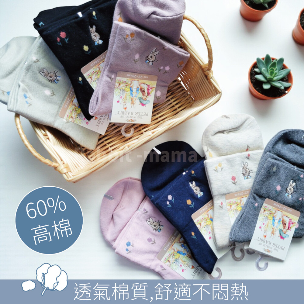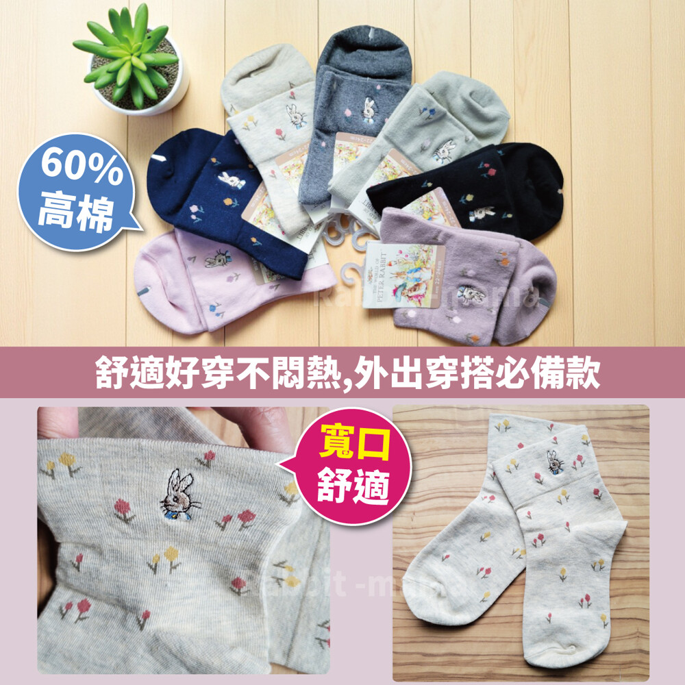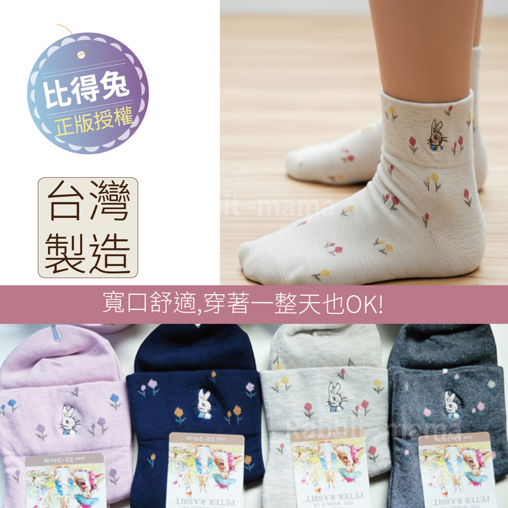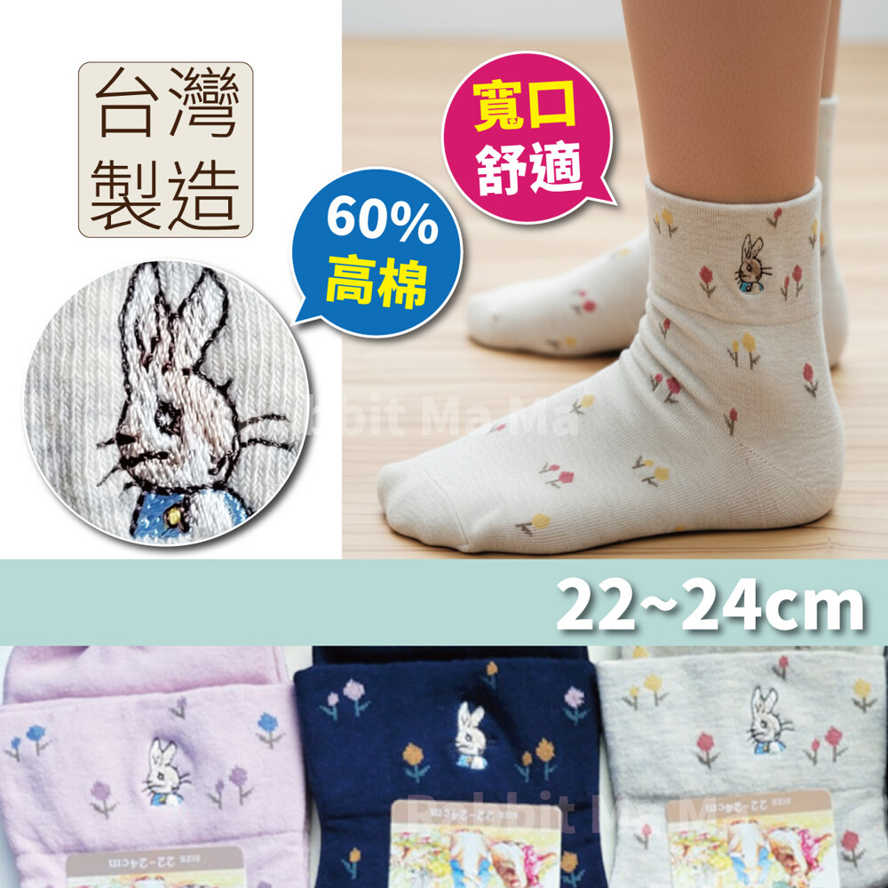 台灣製 彼得兔 細針寬口襪 田園花朵 231 高棉質寬口襪 女襪 比得兔 短襪 休閒襪 兔子媽媽