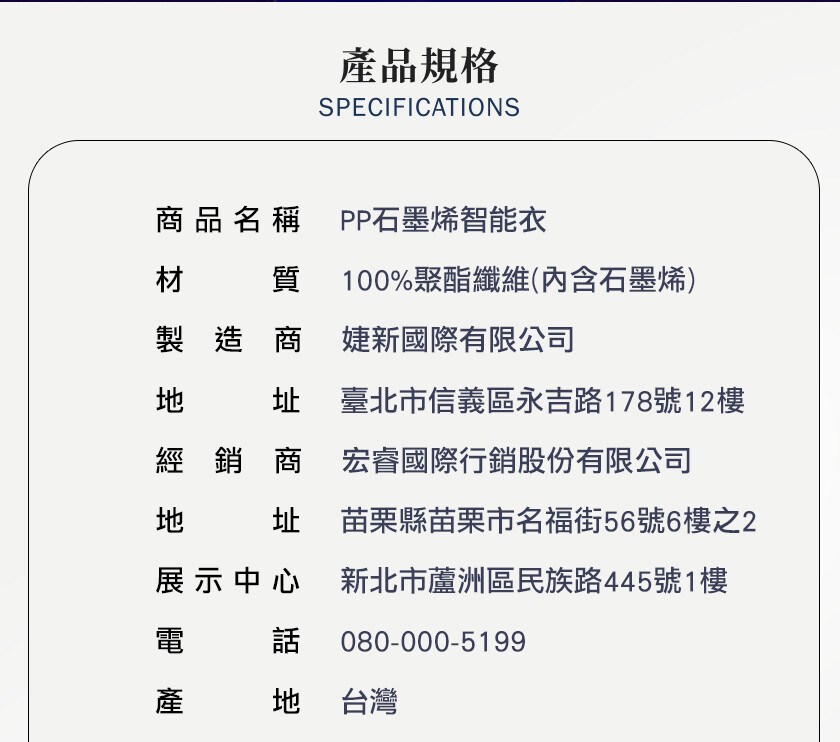 【商品材質】100%聚酯纖維(內含石墨烯)