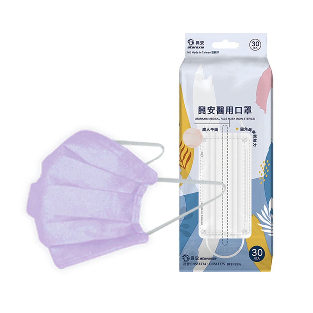 來而康 興安 醫用口罩(未滅菌) 成人 平面口罩 台灣製造 30片/包 圓角設計 口罩 成人口罩