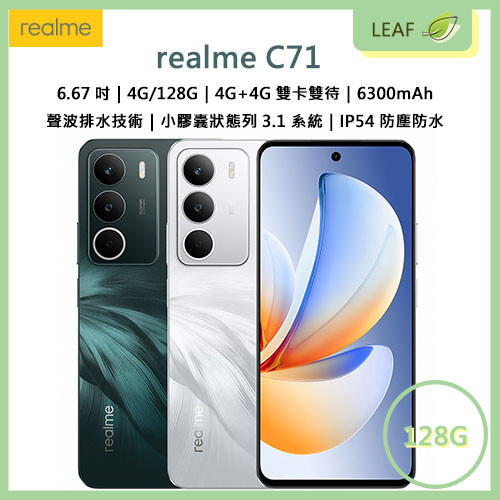 #公司貨 #realme #C71 #6.67吋 #4G/128G #4G雙卡雙待 #6300mAh #側邊指紋辨識 #臉部解鎖 #5000萬畫素主鏡頭 #3.5mm 耳機孔 #入門款 #智慧型手機