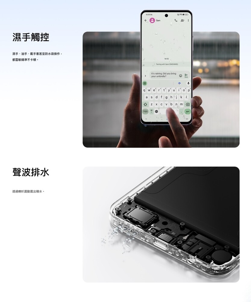 ◎ IP54 防塵防水、聲波排水、濕手觸控