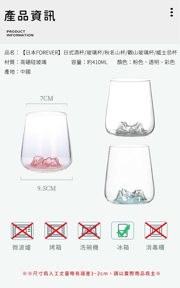 品名:【日本FOREVER】日式酒杯/玻璃杯/秋名山杯/觀山玻璃杯/威士忌杯