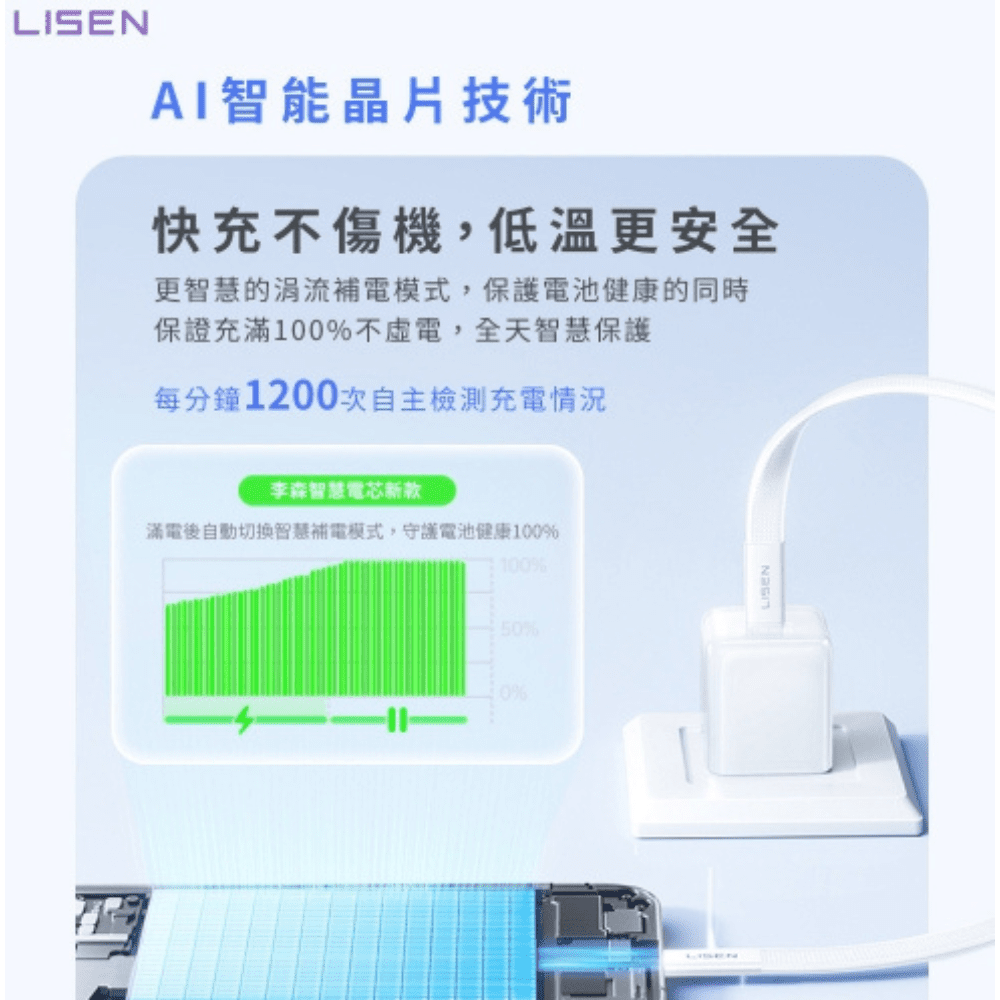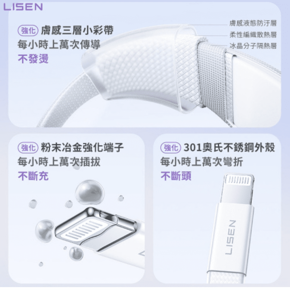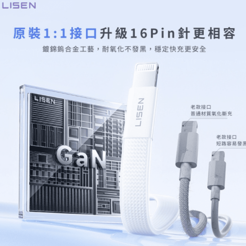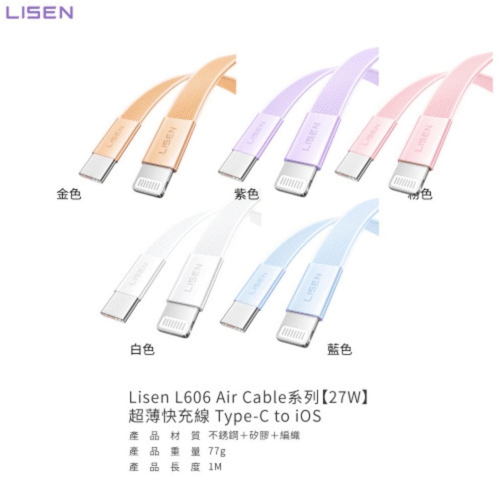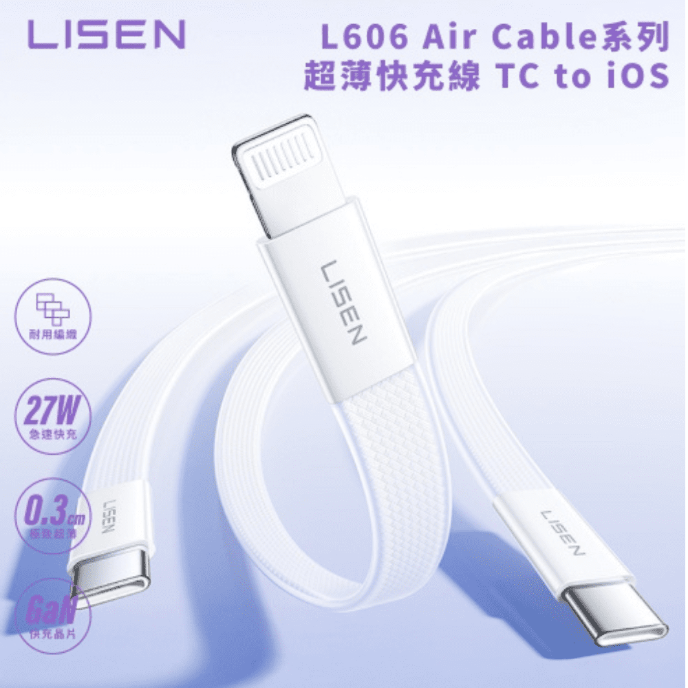 【Lisen】L606 27W超薄果凍快充線 TC to Lightning