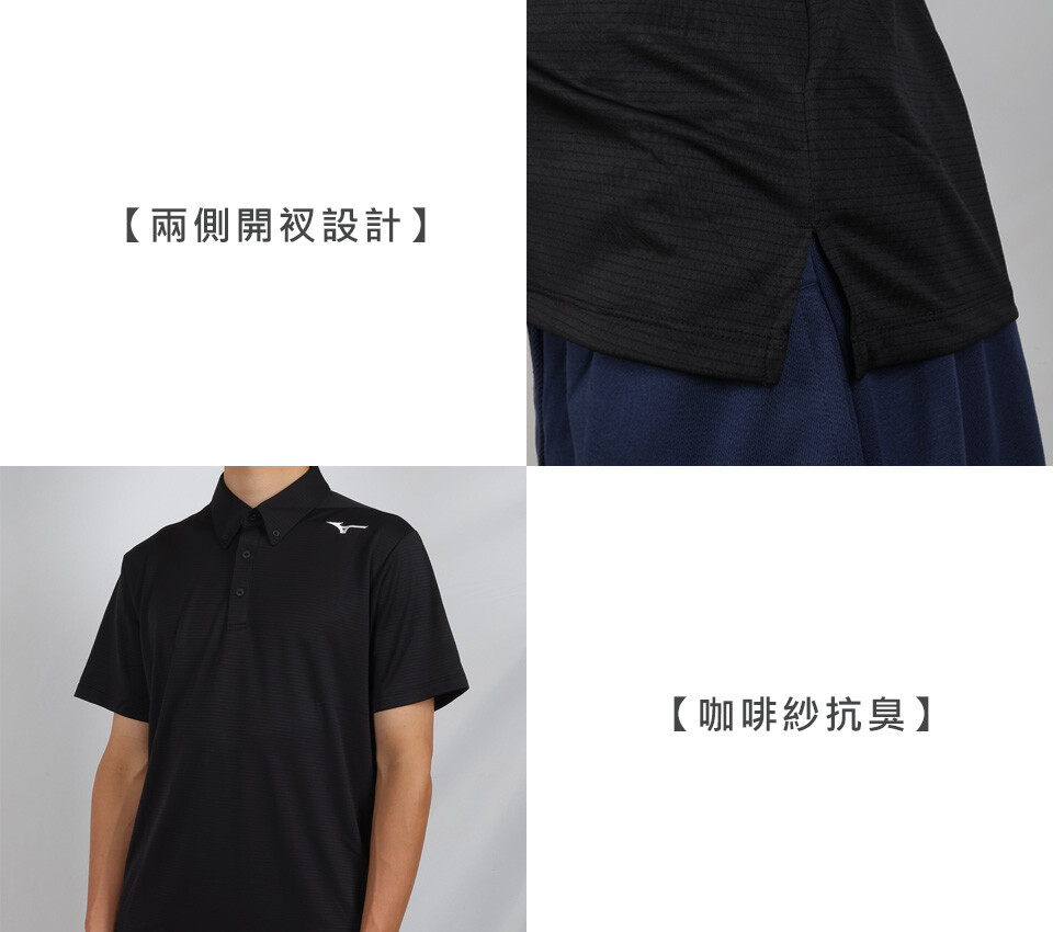MIZUNO 男短袖POLO衫-抗UV 吸濕排汗 台灣製 黑白