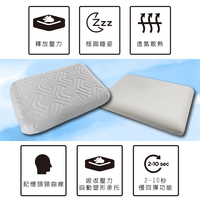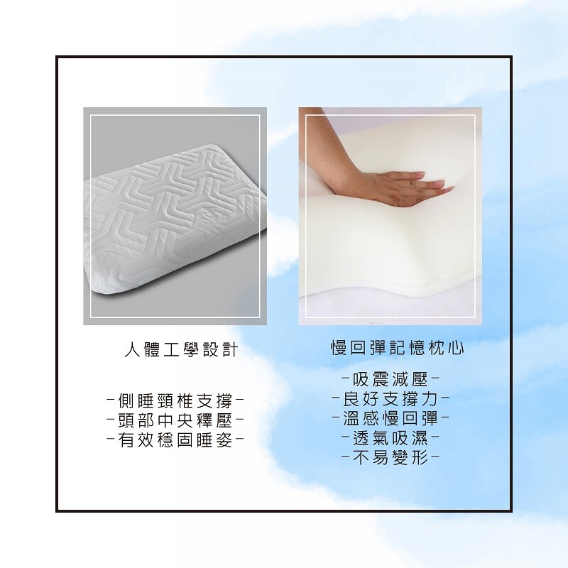 親水棉枕頭完美貼合頭頸曲線,符合人體工學的枕型,釋放身體的壓力,給予頸椎最佳的支撐,改善睡眠品質。