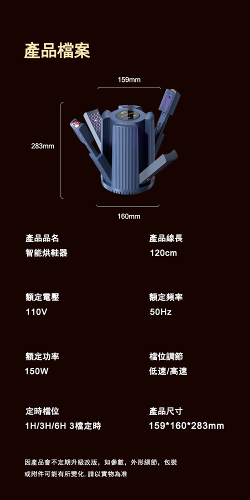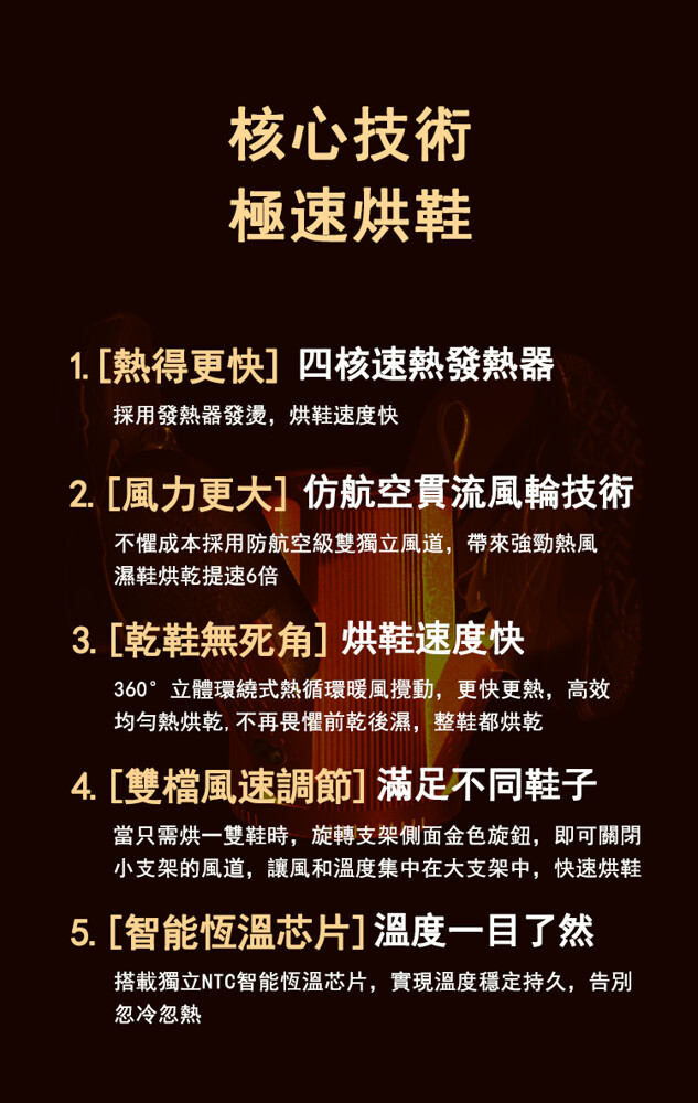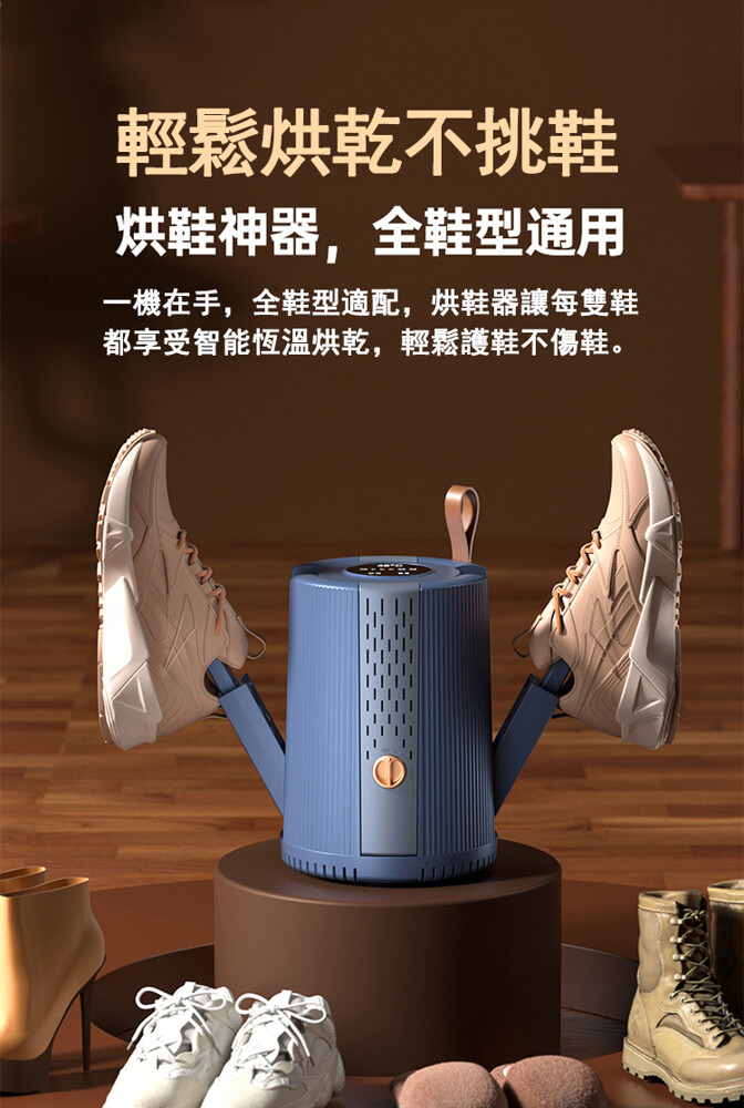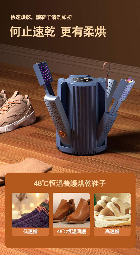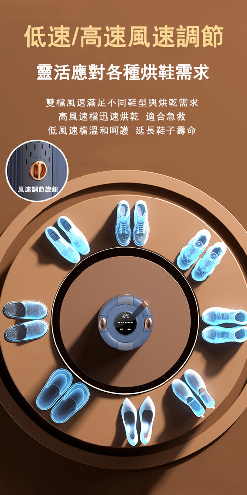 兩檔風速,為不同類型的鞋子設定最佳烘乾風力
