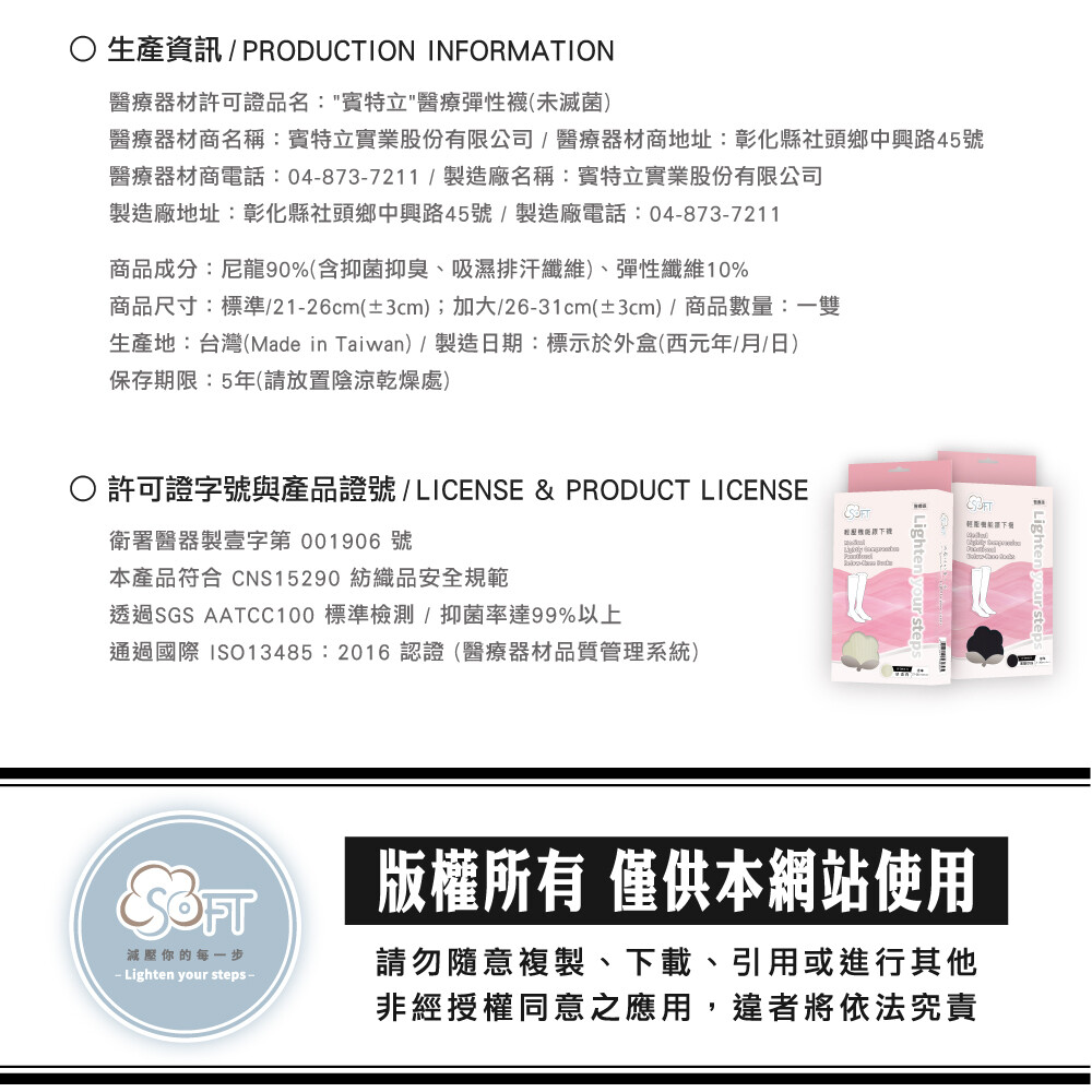 醫療器材許可證品名:賓特立醫療彈性襪(未滅菌)
