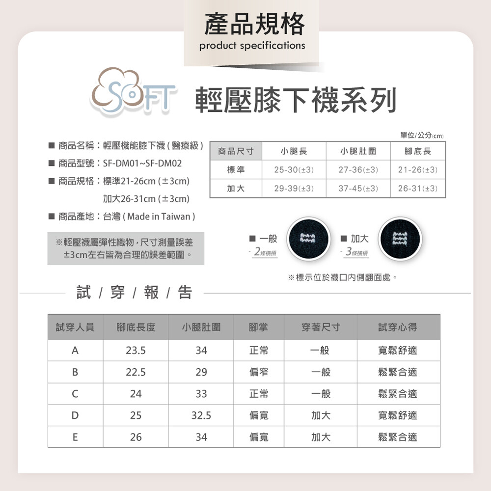 商品名稱:SOFT輕壓機能膝下襪 醫療級