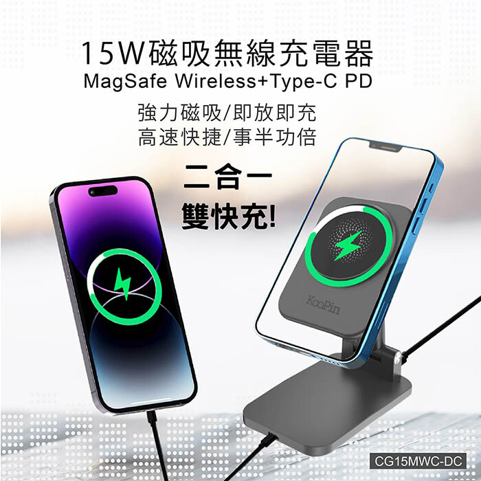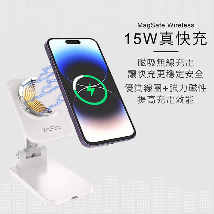 KooPin 台灣製造 3合1 折疊手機支架15W快充磁吸無線充電板/充電盤/充電器