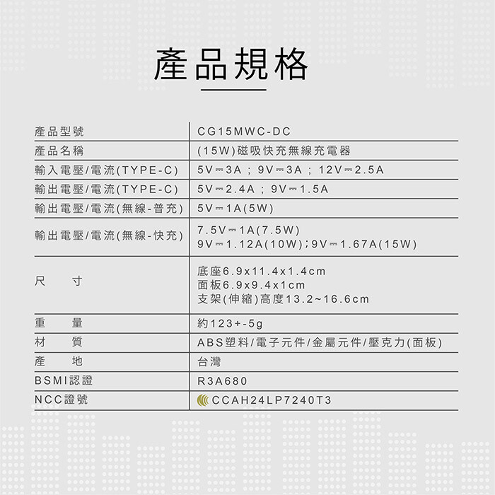 ◎ 15W無線快速充電器,支援快速閃充,符合Qi標準規格