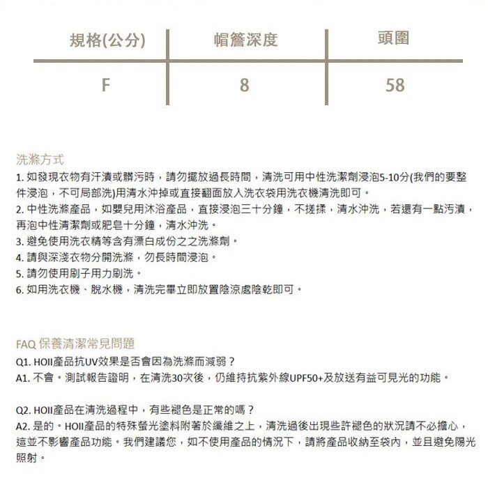 – 規格(公分):帽簷深度8 / 頭圍58