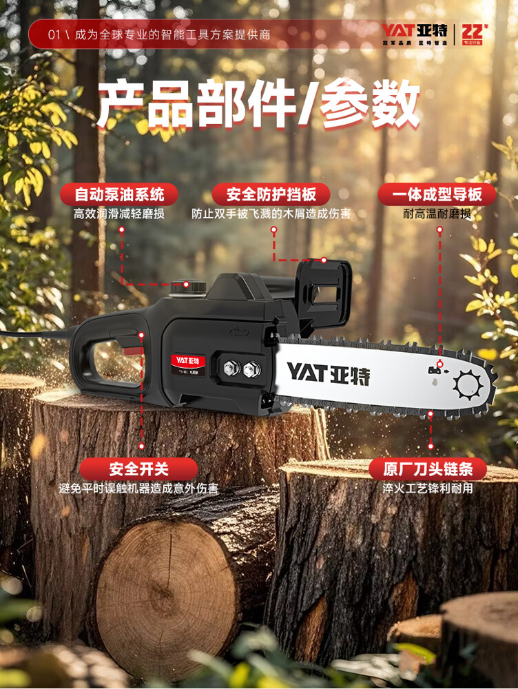 亞特YT4412電鋸小型家用 手持伐木鋸 插電式電動鋸 切割專用木工鋸樹
