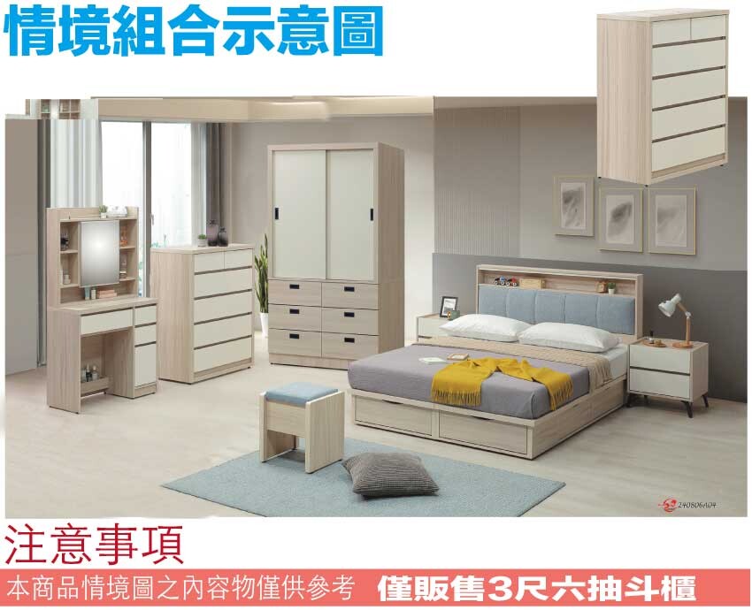 搭配採用六抽屜+開放桌面等收納空間設計