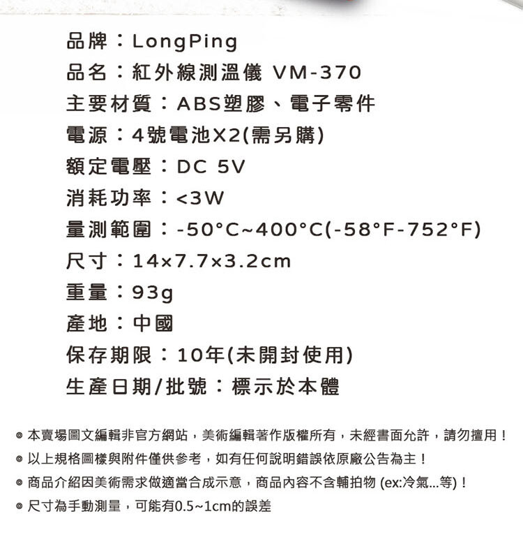 量測範圍:-50°C~400°C(-58°F-752°F)