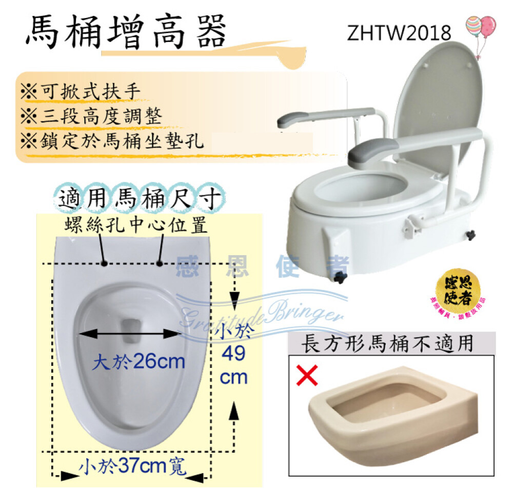 來而康 日華 感恩使者 馬桶 增高器 ZHTW2018 扶手可掀 高度可調 墊高 增高 加高