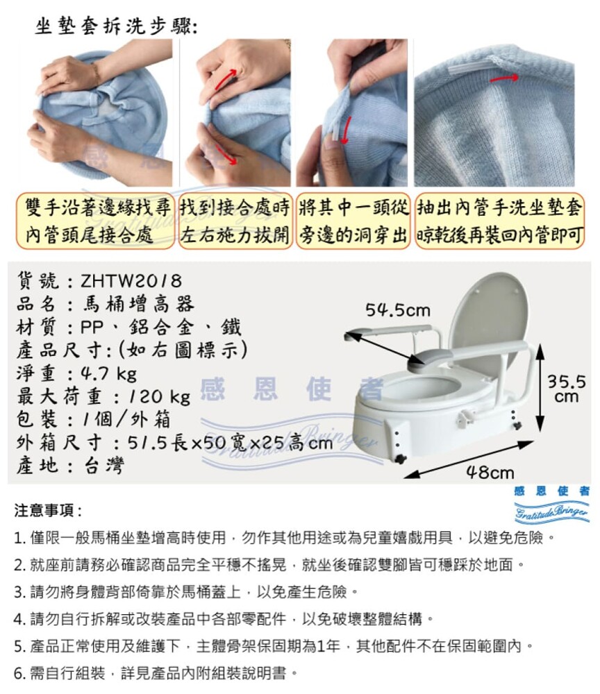 馬桶增高器 附贈坐墊貼3副+坐墊套(隨機