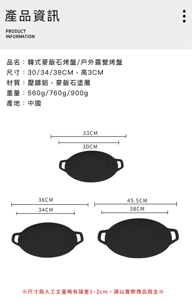 品名:韓式麥飯石烤盤/戶外露營烤盤