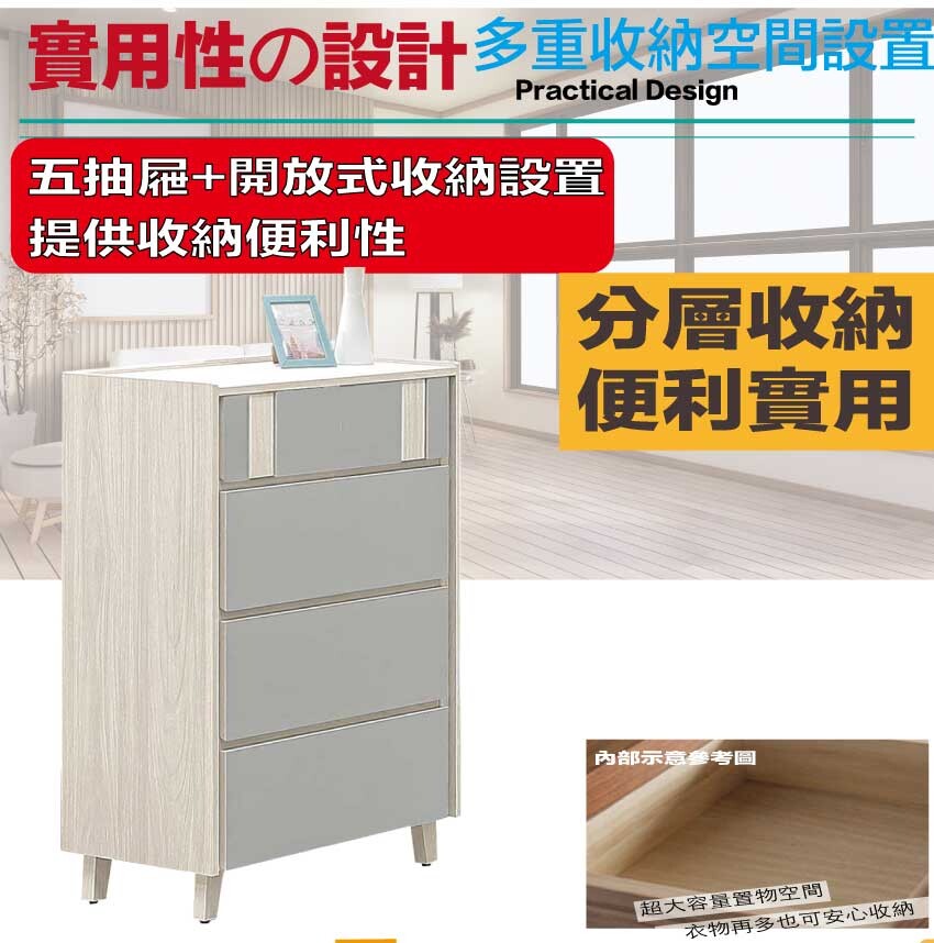 【綠家居】奇伊2.6尺五抽斗櫃 木紋雙色系+安心材質製造,使用放心+搭配居家更便利,採用防蛀木心板+防潮耐磨底座+五金滑軌結構等安心材質製造 ,外層採用防潮耐磨噴漆處理搭配採用五抽屜+開放式桌面等收納空間設計,全由專人配送到家,專業安心服務,替你省下更多時間!