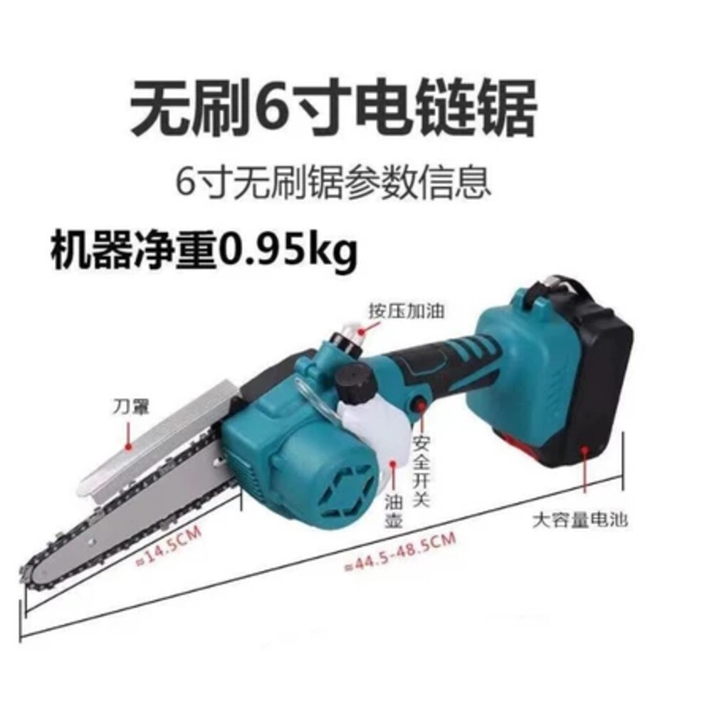 鋰電無刷電鏈鋸 JJ(牧田款) 21V 6吋 5.0AH一電一充(單電池) ,保固半年。
