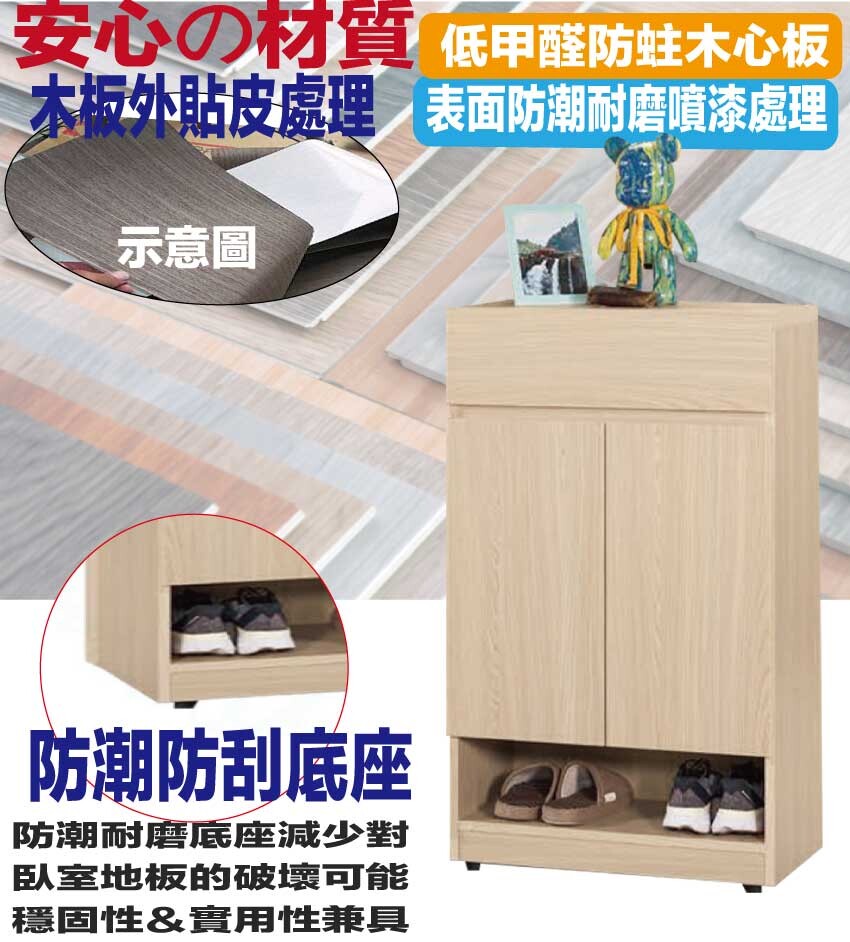 【綠家居】朵利2尺二門單抽鞋櫃(二色可選) 二色可選+安心材質製造,使用放心+搭配居家更便利,採用防蛀木心板+防潮耐磨底座+防夾手緩衝門片五金+五金滑軌結構等安心材質製造 ,外層採用防潮耐磨噴漆處理搭配採用開門櫃+單抽屜+內&外開放層格等收納空間設計,全由專人配送到家,專業安心服務,替你省下更多時間!