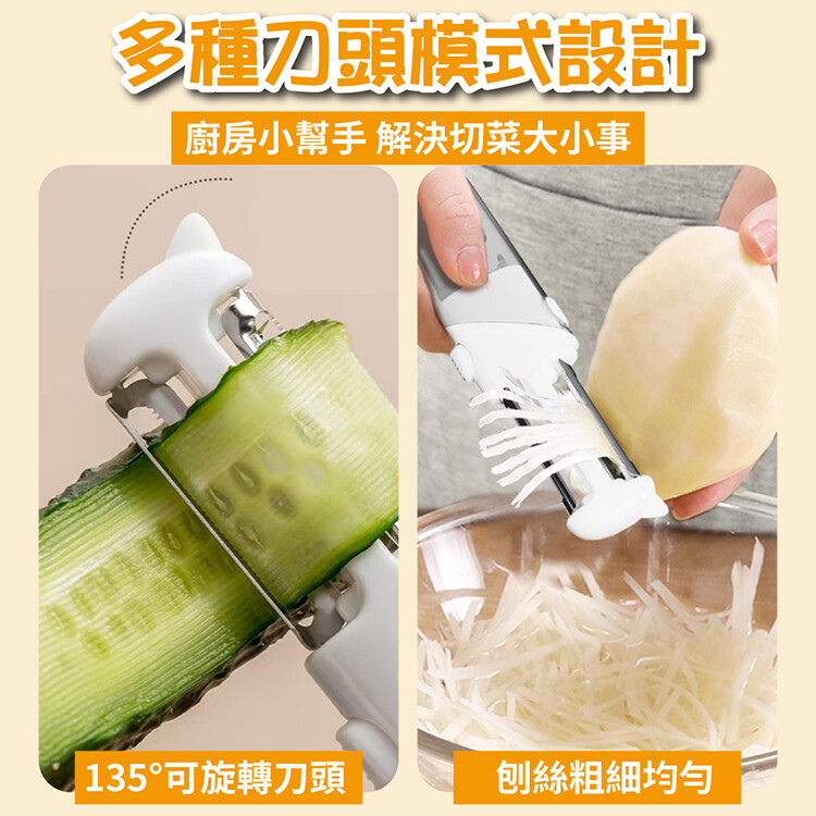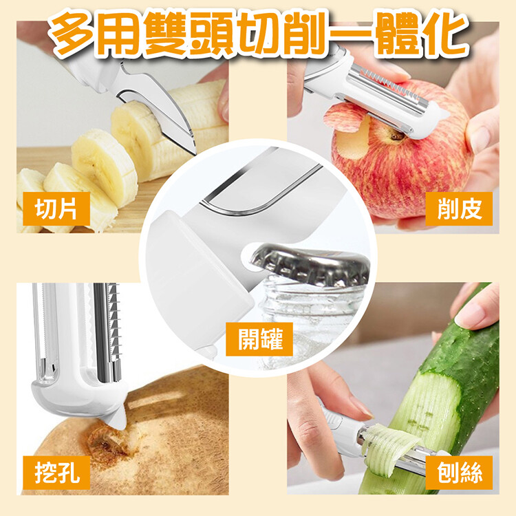 雙頭設計,削皮刨絲切片開罐,一把多用,廚房好幫手。