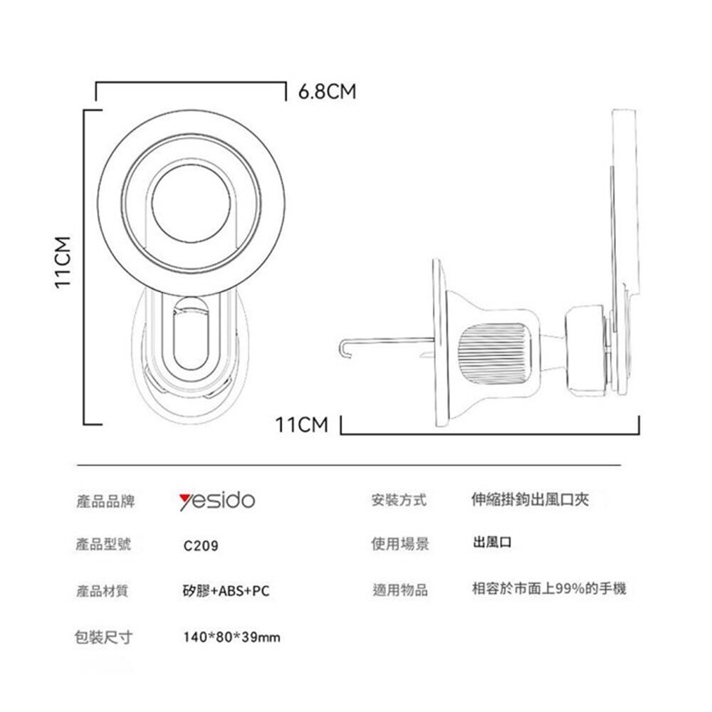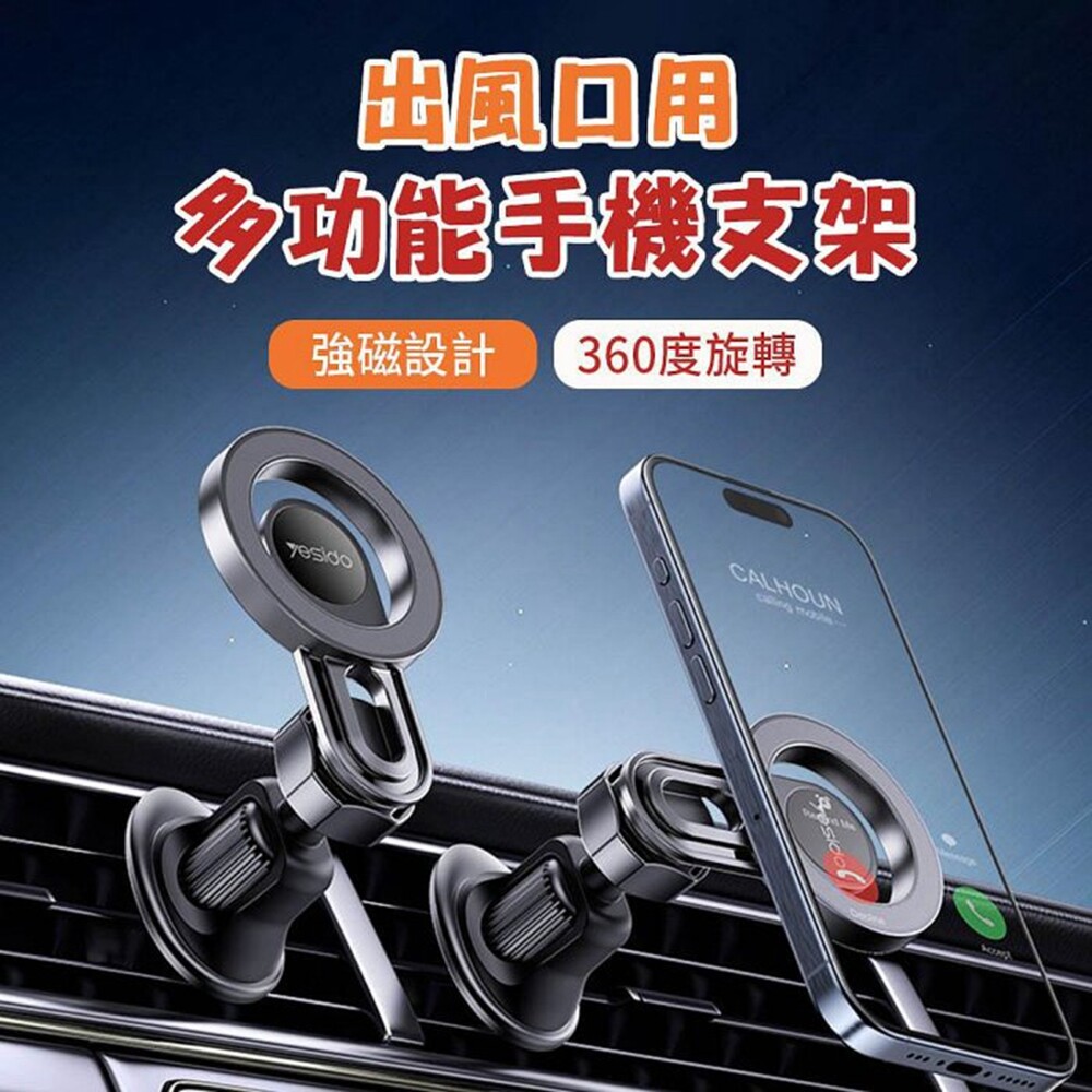 yesido 磁吸手機支架 汽車出風口 多功能旋轉強磁 車用手機支架