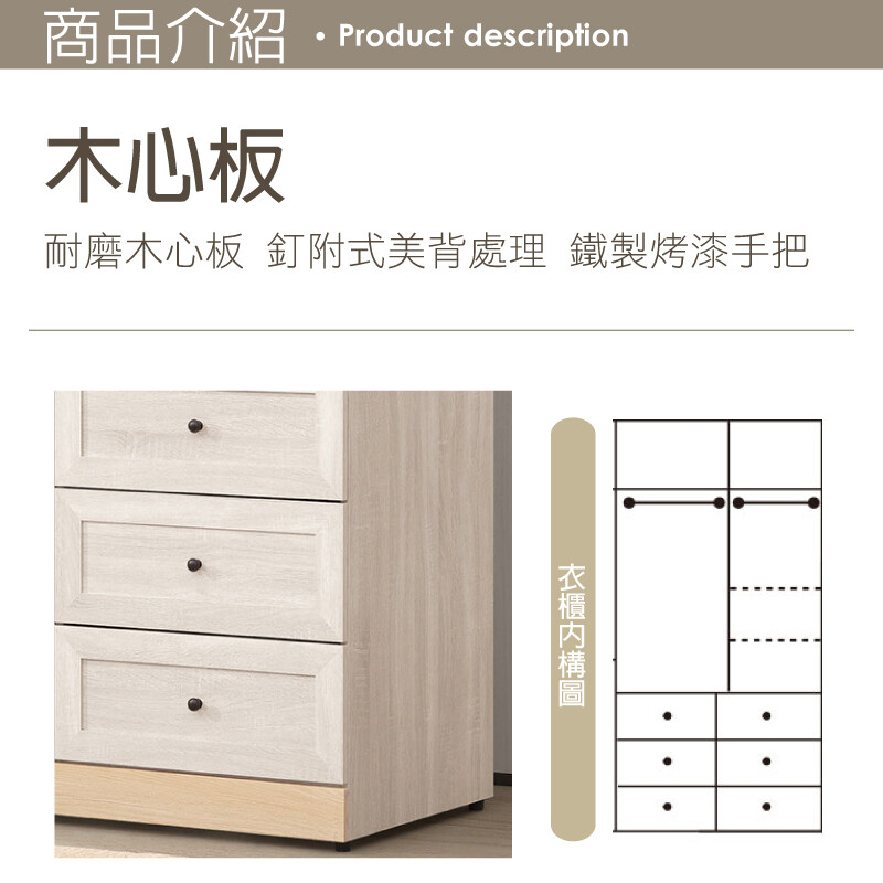 《奈斯家具Nice》285-07-HJ 維特4x8尺六抽衣櫃/衣櫥