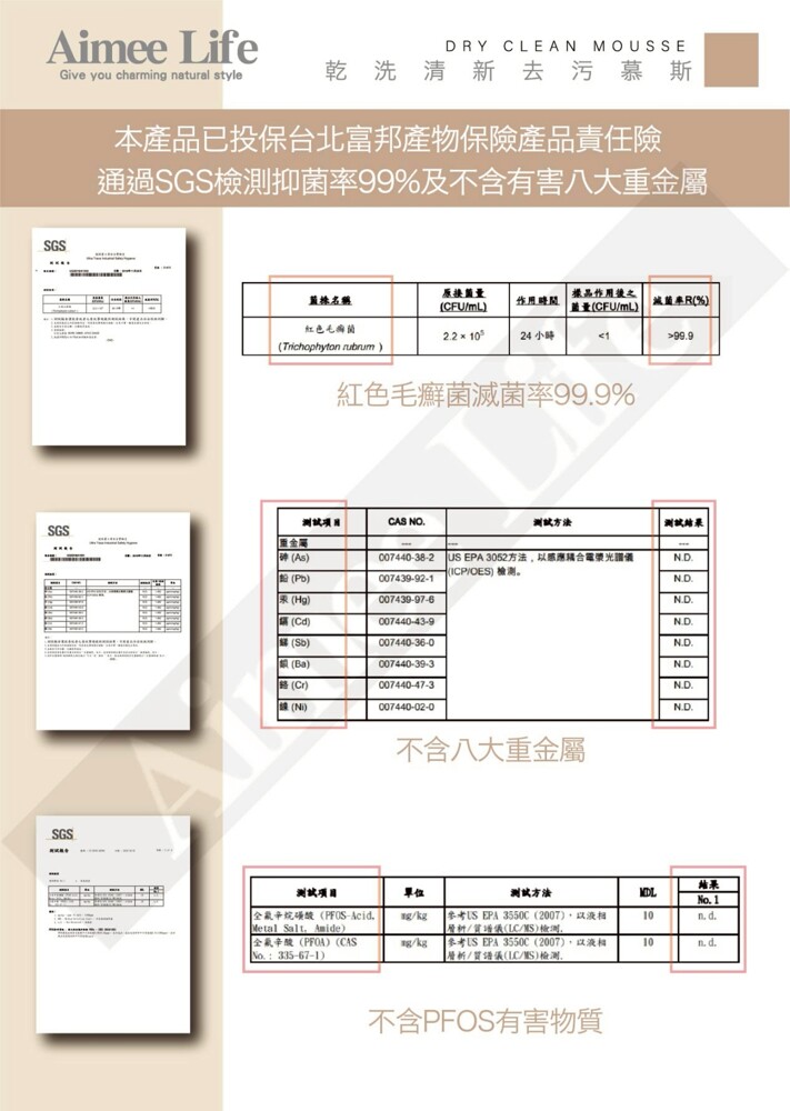 ◆ 通過SGS檢測抑菌率99%及不含有害八大重金屬