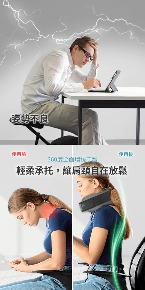 2. 使用前,請摘除頸部飾品(如項鍊、耳機、名牌等)以免影響按摩效果。