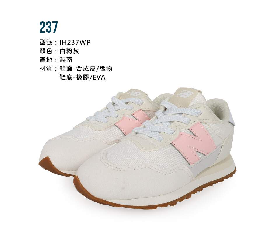 NEWBALANCE 女小童復古慢跑鞋-WIDE-復古 慢跑 237系列 NB 白粉灰