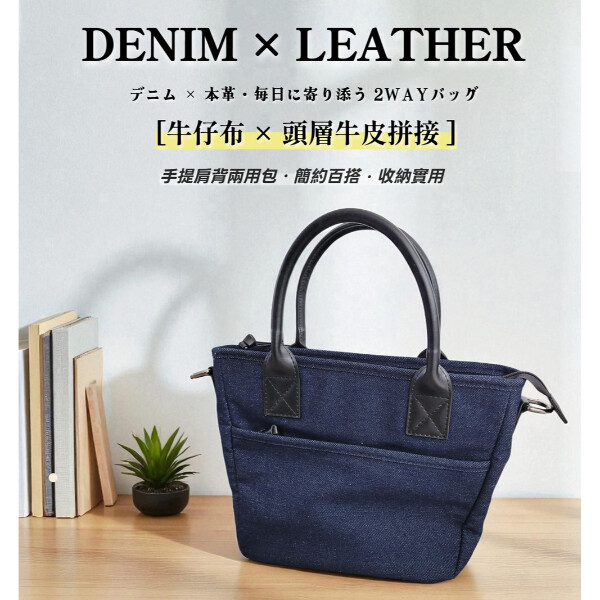 【喜番屋】牛仔布配頭層牛皮2WAY女士手提包肩揹包小包女包【CLB26】