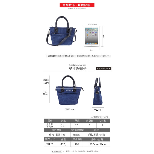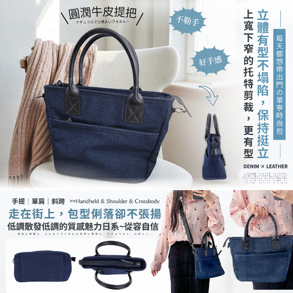 商品名稱:【喜番屋】牛仔布配頭層牛皮2WAY女士手提包肩揹包小包女包【CLB26】