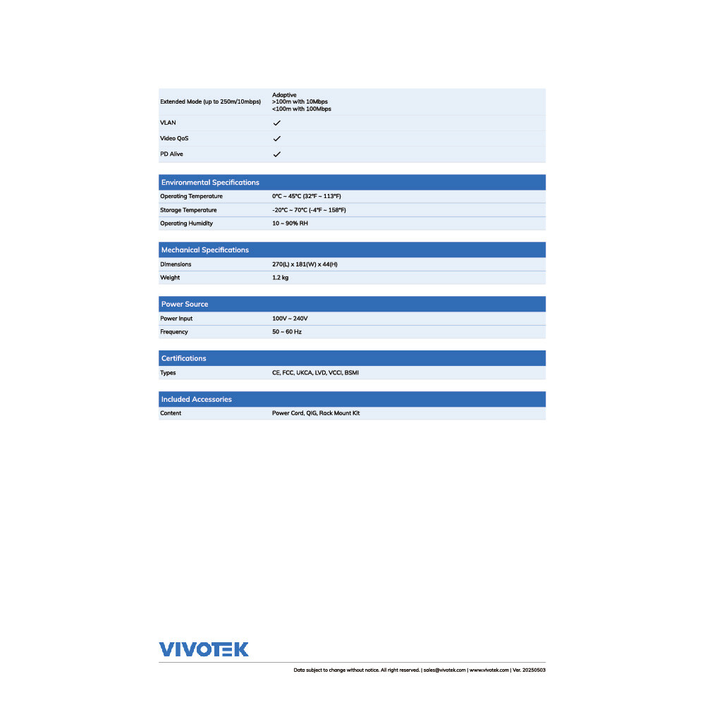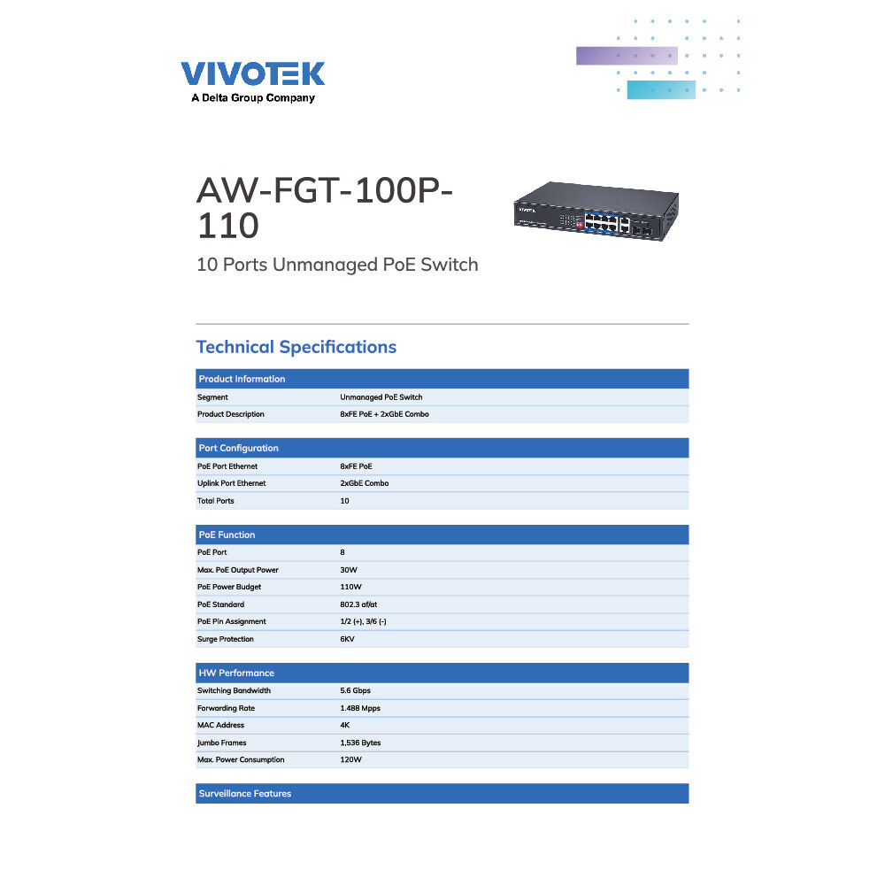 昌運監視器 VIVOTEK 晶睿 AW-FGT-100P-110 10埠非管理型 PoE 交換器