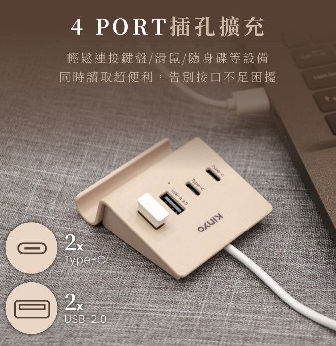 .4孔插孔擴充,同時讀取超便利!USB-A+Type-C接孔雙選擇。
