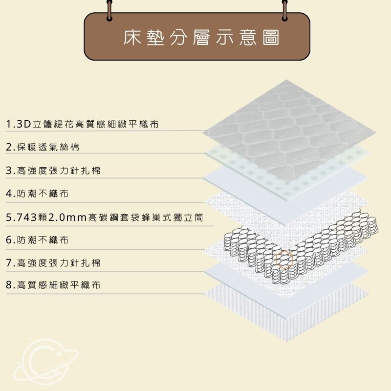 材質 | 表布: 緹花布 填充物: 高碳鋼彈簧 軟硬度: 適中 |