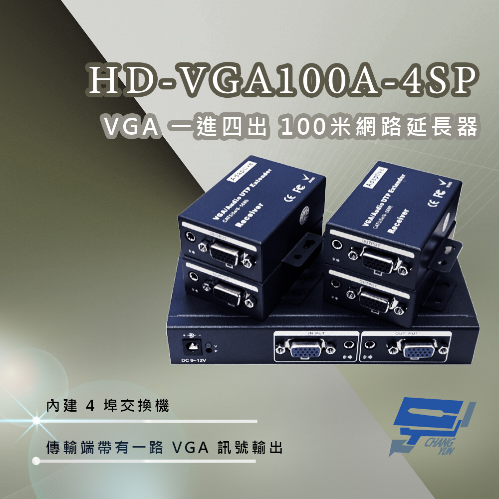 昌運監視器 HD-VGA100A-4SP VGA 一進四出 100米 網路延長器