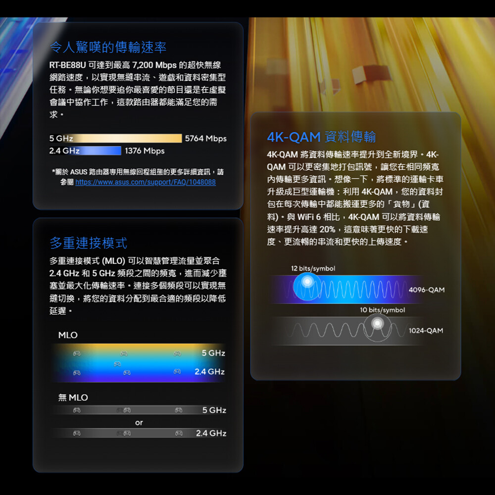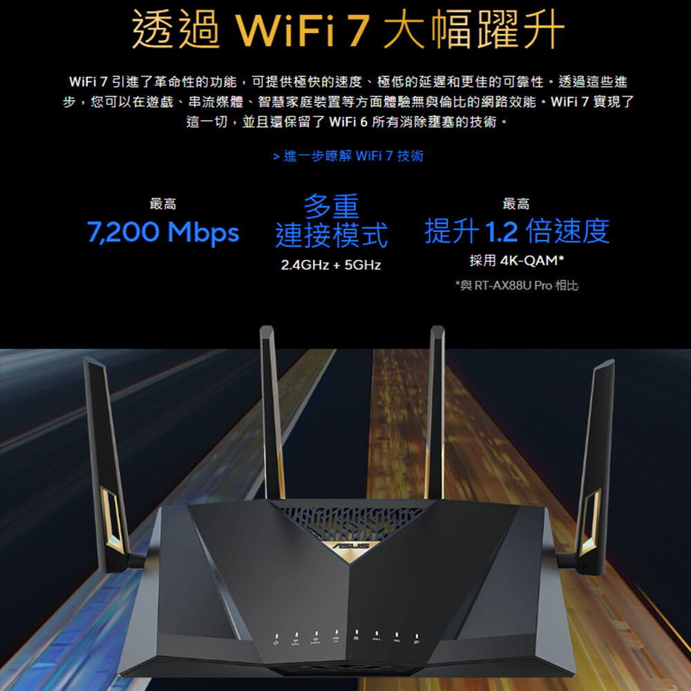 -極速WiFi 7技術利用多重連接模式和4096-QAM將傳輸速率提升至7200Mbps。