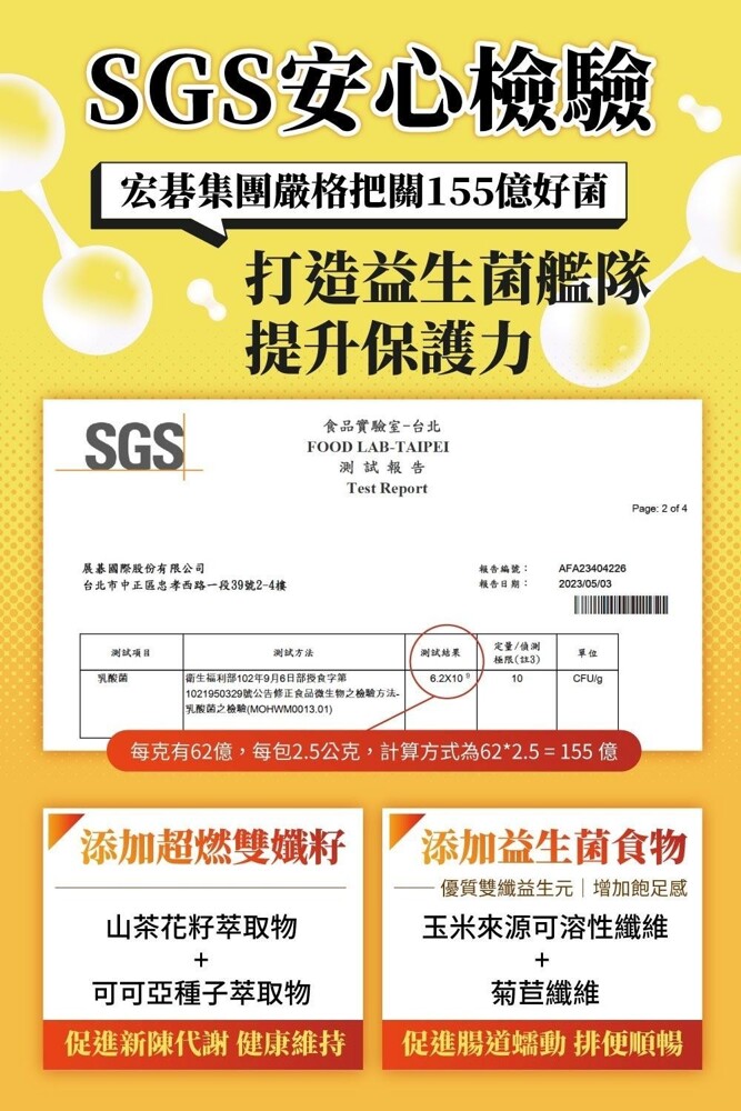 ▲多國專利認證日韓雙益菌,通過SGS安心檢驗,宏碁集團專業團隊嚴格把關