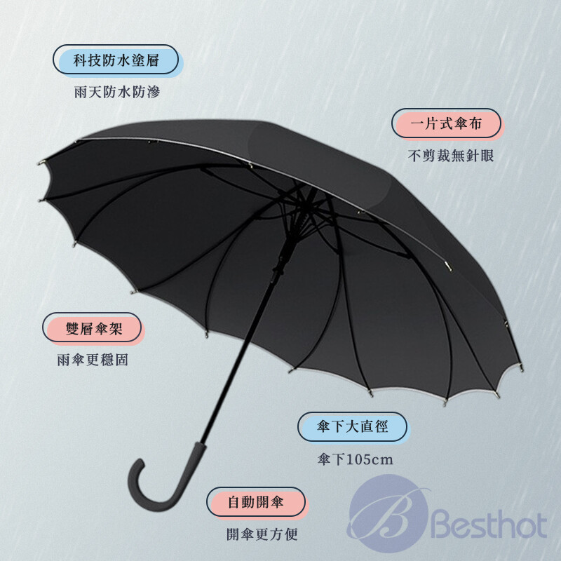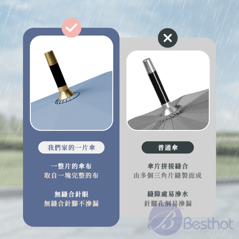 品名 | 無接縫大傘面直立傘 傘布材質 | 高密度碰擊布 傘骨材質 | 玻璃纖維 使用方式 | 自動開傘 / 手動收傘 收傘尺寸 | 5x5x86cm 重量 | 約533g 顏色 | 星夜黑、玫瑰粉、迷霧藍