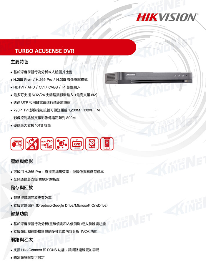 8路及1個硬碟的1U AcuSense DVR