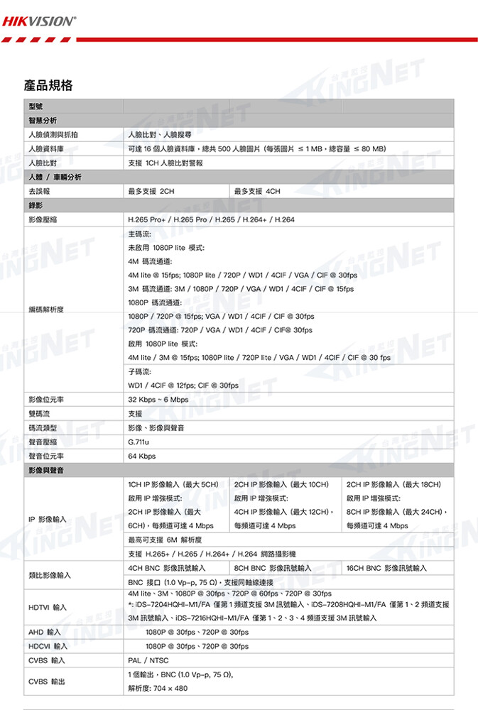 HDTVI/AHD/CVI/CVBS/IP訊號輸入