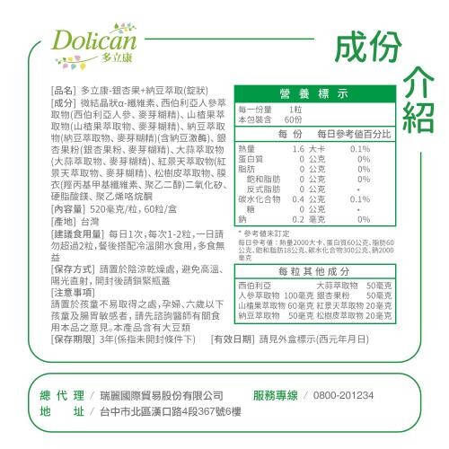 3.商品品名:多立康銀杏果+納豆激酶(錠狀食品)