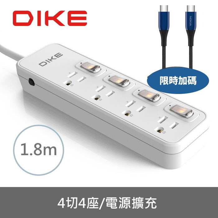 DIKE【DAH646WT-COOL】安全加強型四切四座電源DAH646WT延長線1.8M/6尺排插