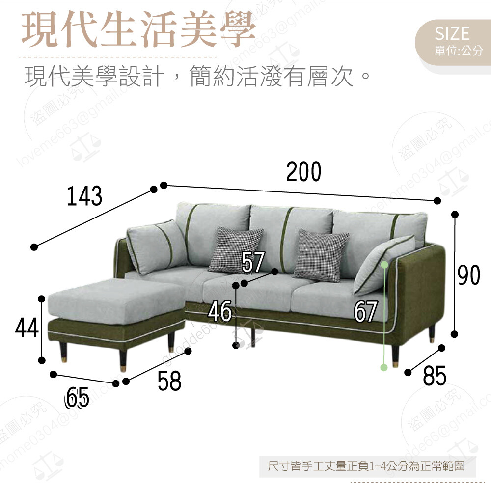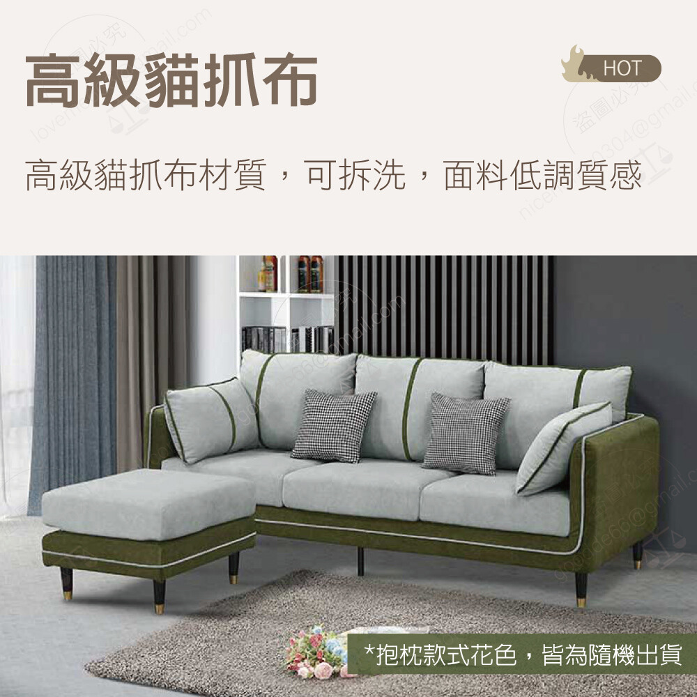 《奈斯家具Nice》220-01-HJ 亞桑L型綠色貓抓布沙發/全組/不拆賣